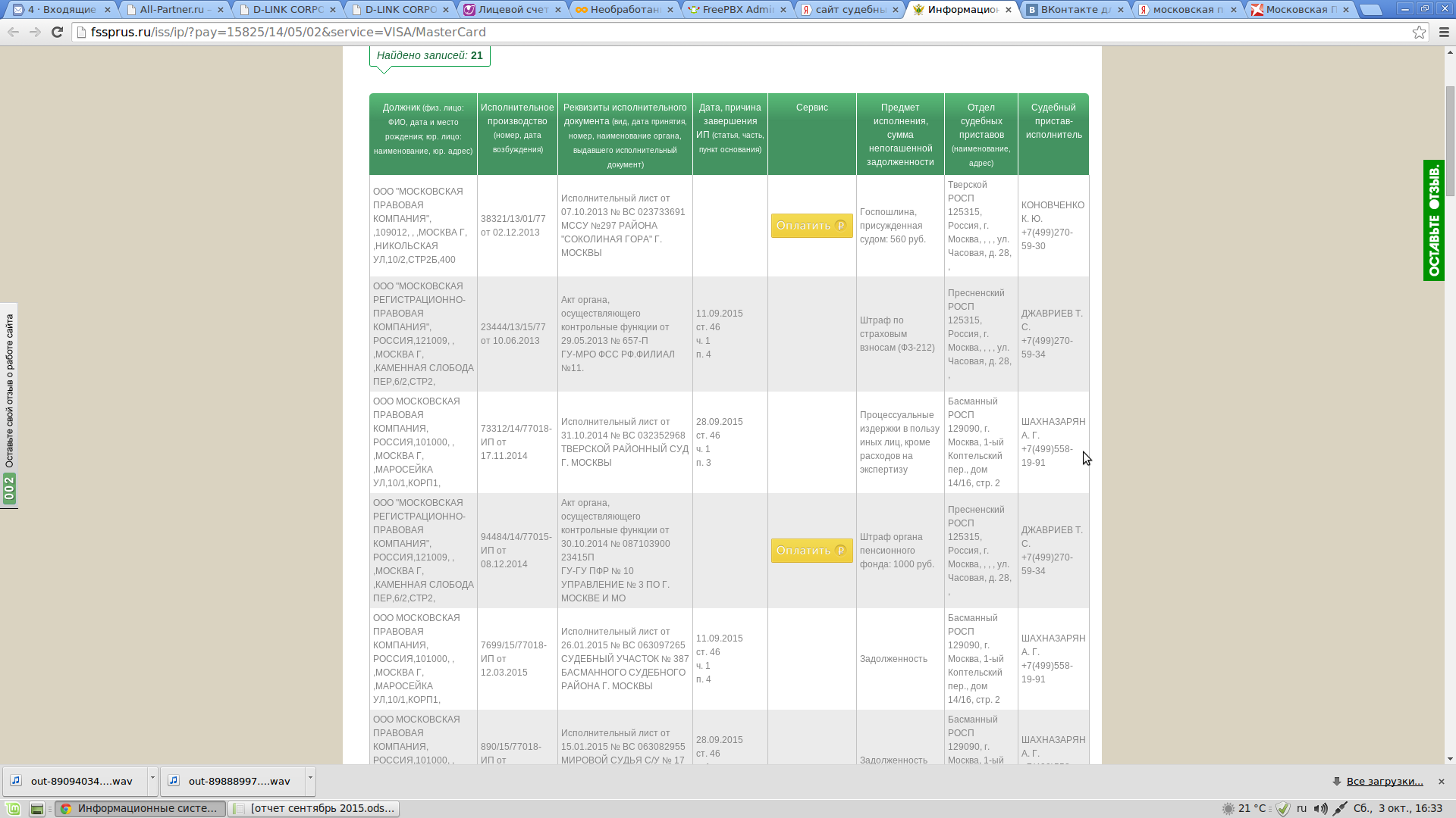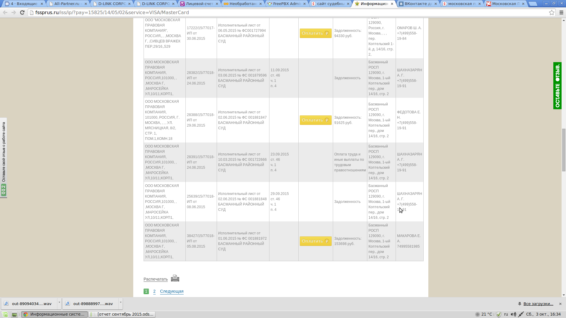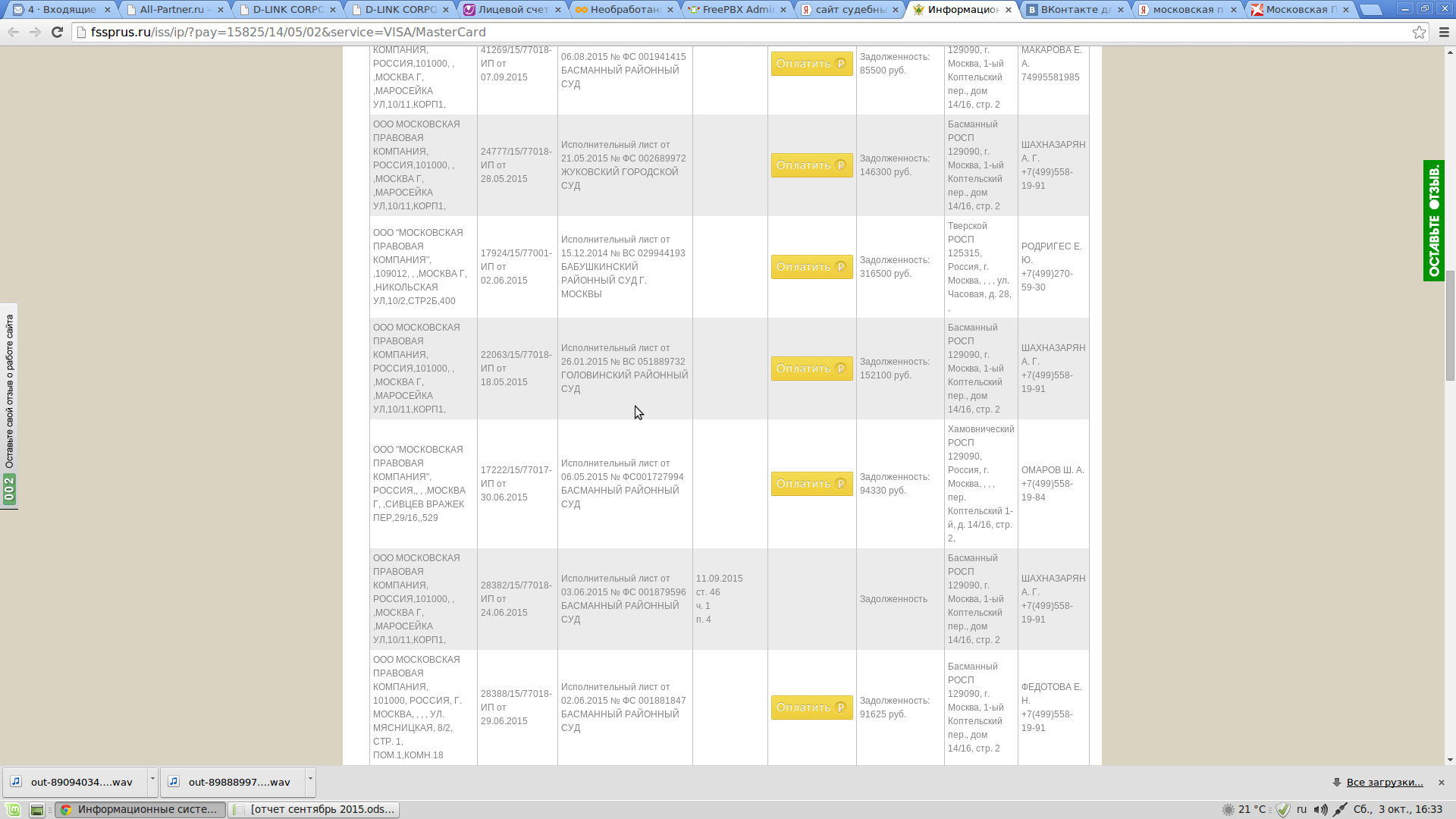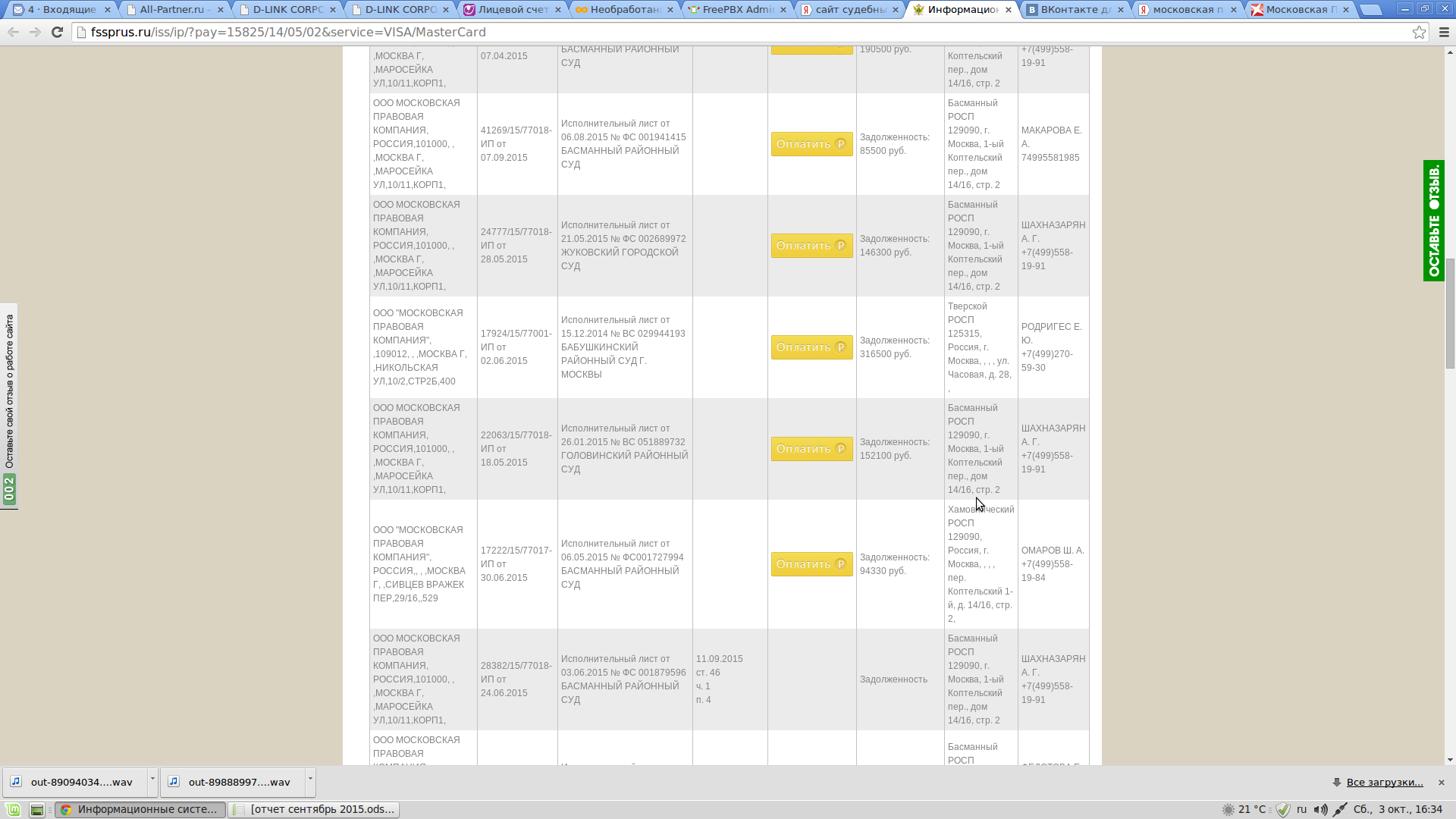 Я не довольна работой Московской правовой компании. В 2012 году я заключила договор на оказание мне юридической помощи. Уверяли меня, что мне обязательно помогут. Беседовал со мной Демидов Иван Алексеевич. У них яко бы есть опыт работы с моей проблемой. Есть рычаги воздействия на следователей. Яко бы постоянно надо следить за продвижением дела и постоянно " задалбливать" следователей, что бы дело велось. Но в результате воз и ныне там. Ничего они не делают. В результате надо мне постоянно " задалбливать" звонками юриста, что бы он хотя бы что то предпринял. И потом как ему не позвонишь , он постоянно либо занят либо болен. Много дел у него ведётся одновременно. А меня разве должно это волновать? Я заплатила за что деньги? Причём сумму требуют оплатить сразу 100 процентов. Себя они конечно не обижают. И что мне теперь делать? Кому жаловаться? Противно всё. НЕПРОФЕССИОНАЛЬНО вообще. Как так можно работать ?